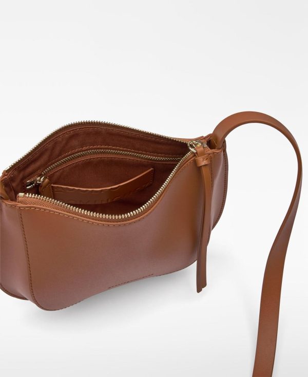 Bandolera pequeña Dorna piel mujer. Un compartimento. Cierre cremallera. Bolsillo interior con cierre cremallera. Asa larga regulable. Logo grabado.