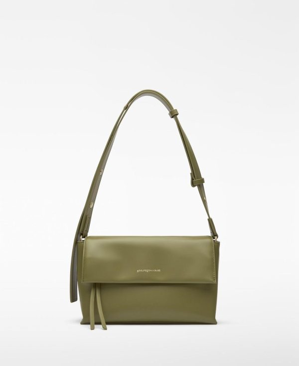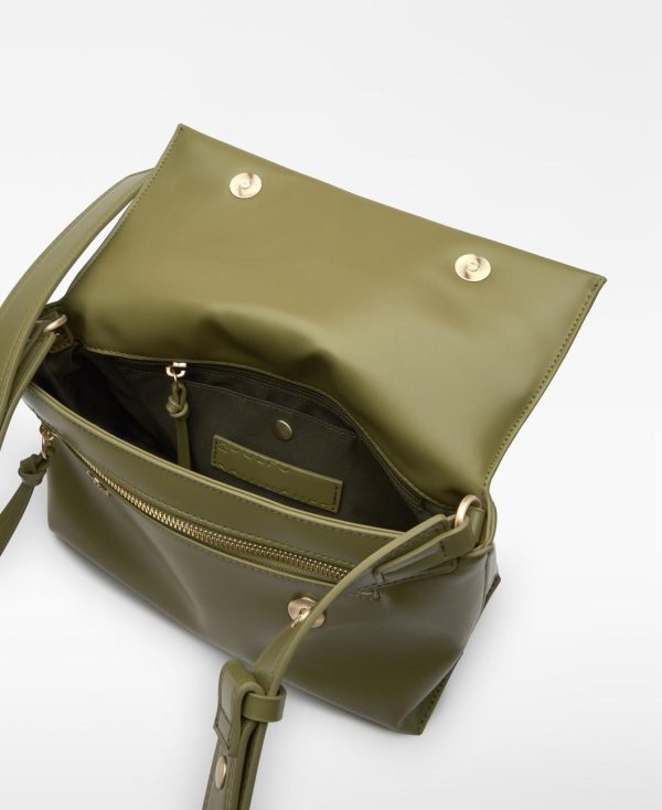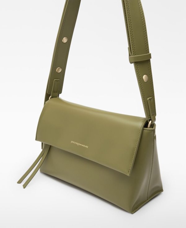 Bolso de hombro Piel No Piel mujer. Textura lisa. Un compartimento. Cierre magnético con solapa. Bolsillo exterior con cierre cremallera. Asa regulable. Logo grabado.
