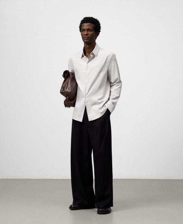 Camisa Rayas Cuello Solapa Hombre Gris Rayas HOMBRE | CAMISAS Adolfo Domínguez