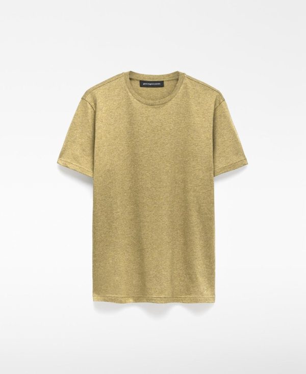 Camiseta jaspeada algodón orgánico hombre. Regular fit. Cuello caja. Manga corta. Doble pespunte en bajo. Logo bordado en bajo.