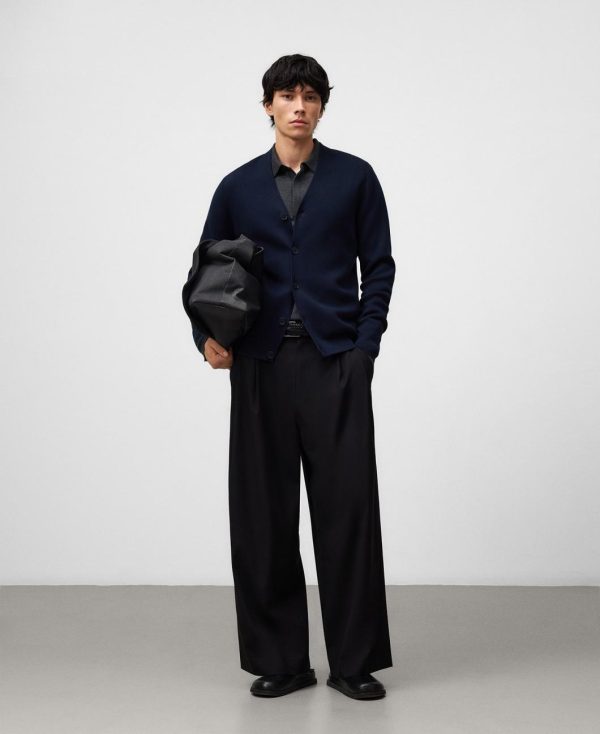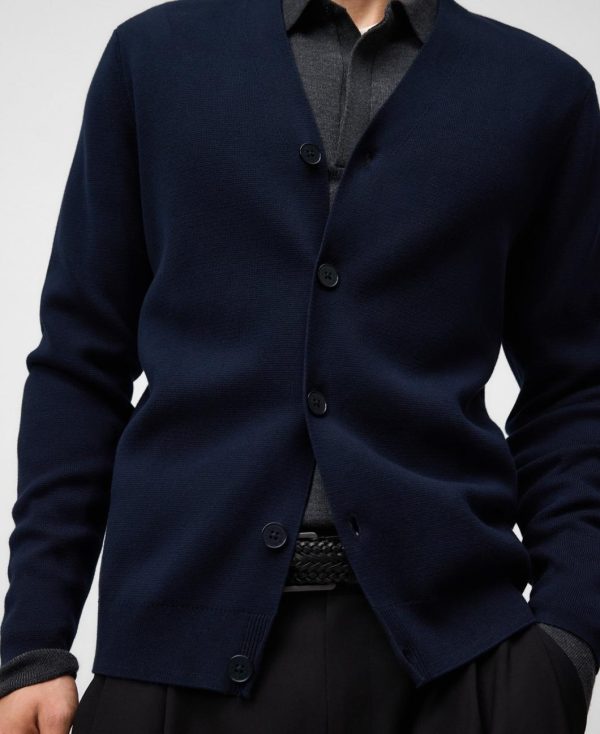 Cárdigan punto cerrojillo algodón orgánico hombre. Cuello pico con menguados. Manga larga. Cierre botonadura frontal.