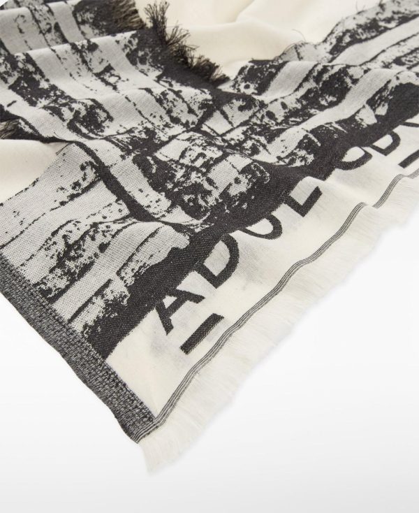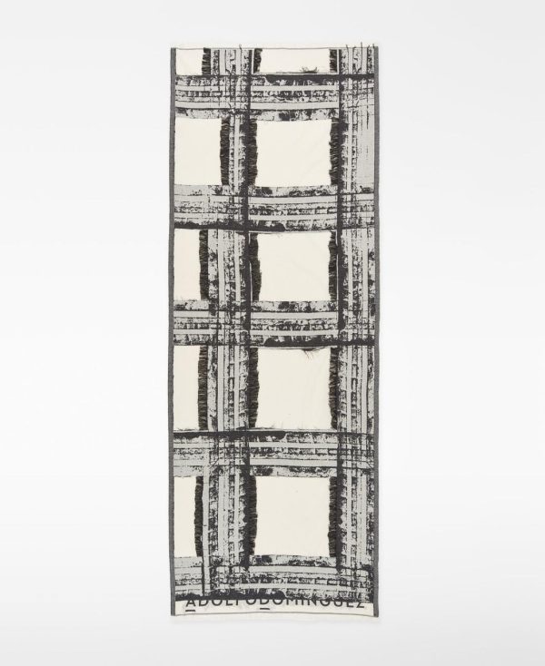 Chal estampado algodón orgánico mujer. Detalles desflecados. Logo estampado.