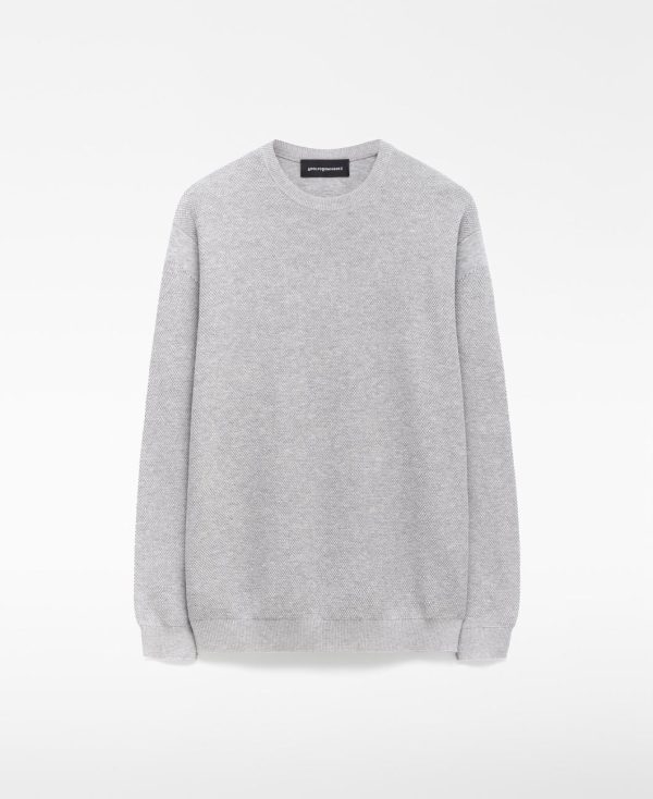Jersey punto estructura algodón orgánico hombre. Manga larga. Cuello caja en canalé. Remates en canalé. Etiqueta exterior logotipada en espalda.
