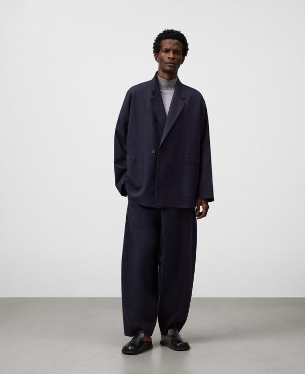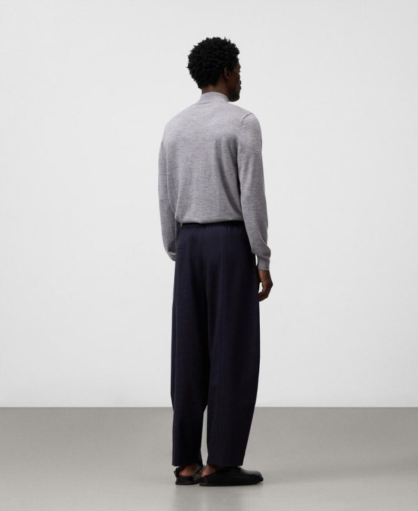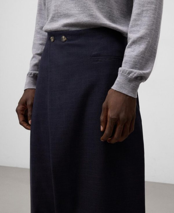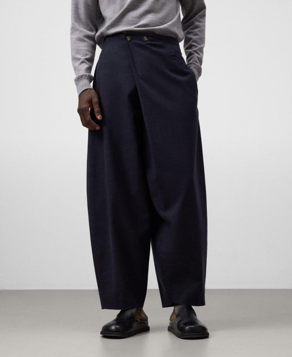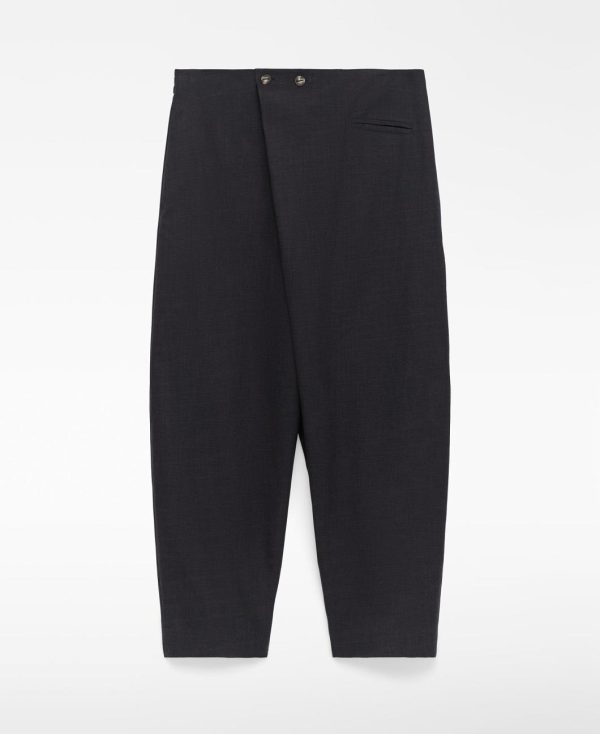 Pantalón barrel fit. Delantero cruzado con cierre dos botones. Cinturilla elástica en espalda. Bolsillos laterales. Bolsillos de vivo en delantero y espalda. Costura lateral adelantada.