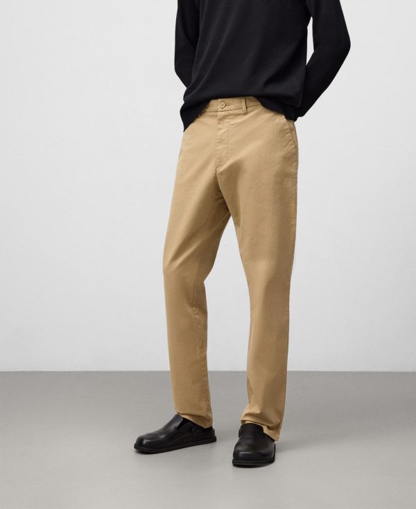 Pantalón chino algodón hombre. Regular fit. Cierre botón. Trabillas. Bolsillos italianos laterales. Bolsillos de vivo con botón en espalda. Logo bordado en espalda.
