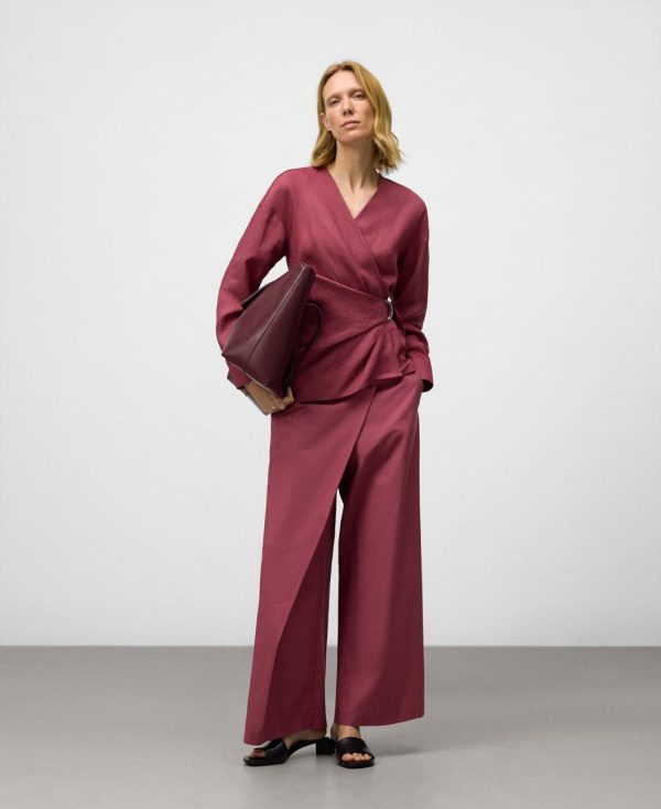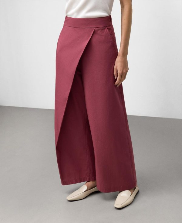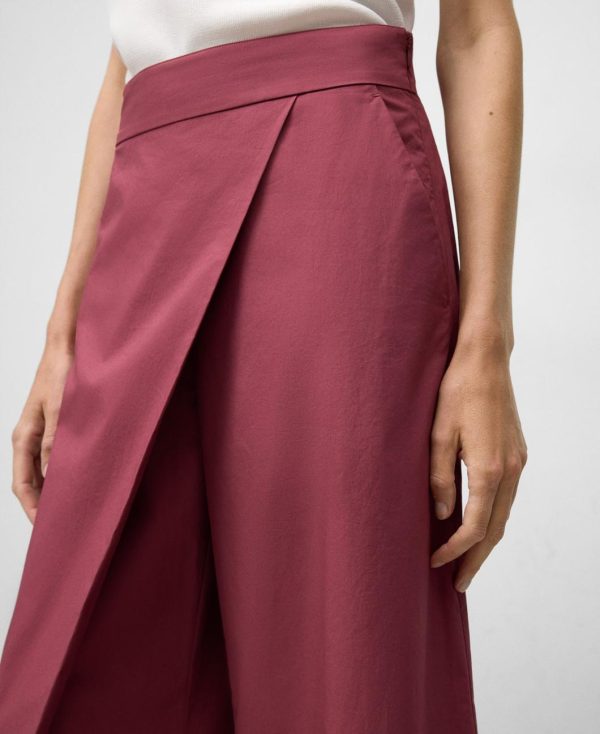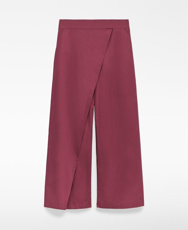 Pantalón pareo algodón mujer. Delantero cruzado. Cinturilla elástica en espalda. Bolsillos laterales. Bolsillos de vivo en espalda. Cierre cremallera lateral. Pierna recta.