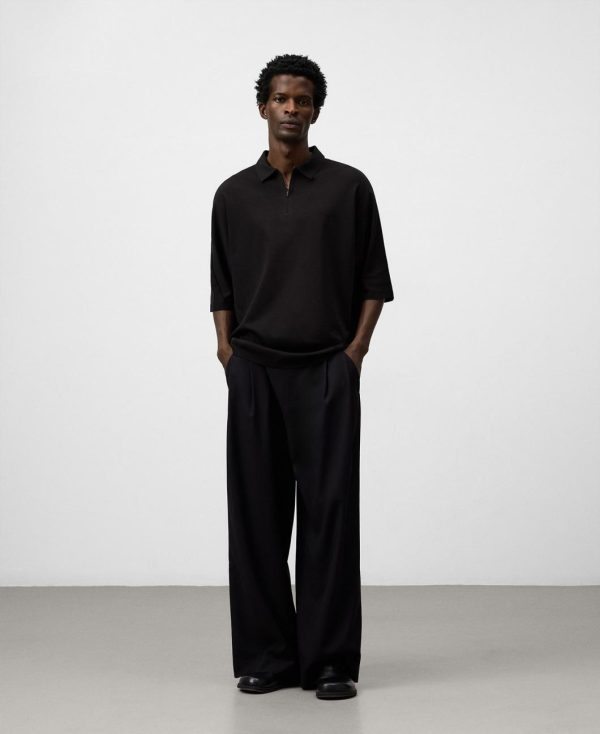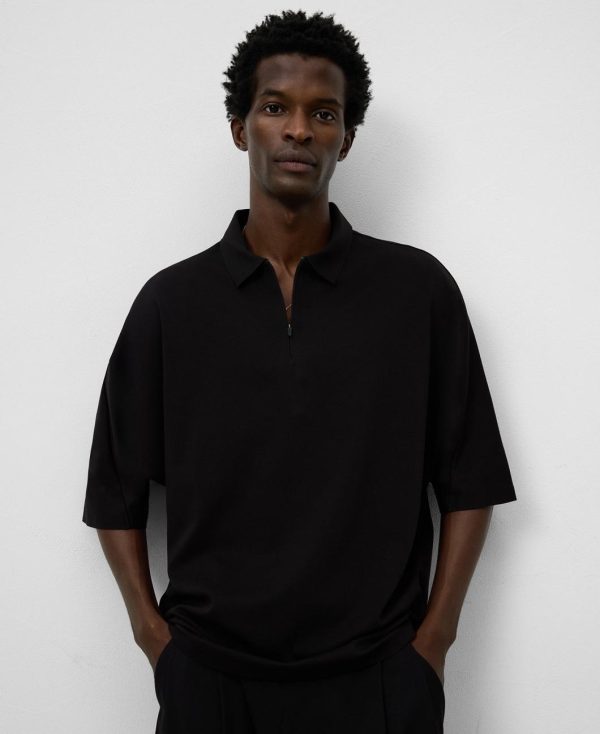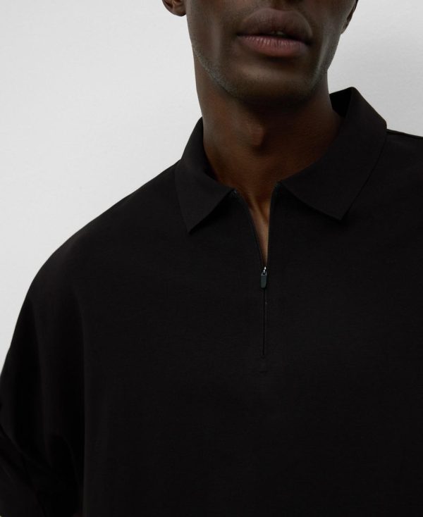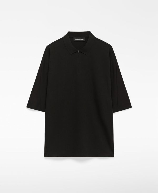 Polo oversize hombre. Cuello solapa con cierre cremallera invisible. Manga corta con detalle de cortes verticales. Corte horizontal en espalda. Logo estampado en espalda. Remates termosellados.