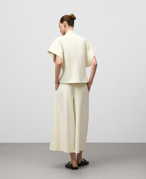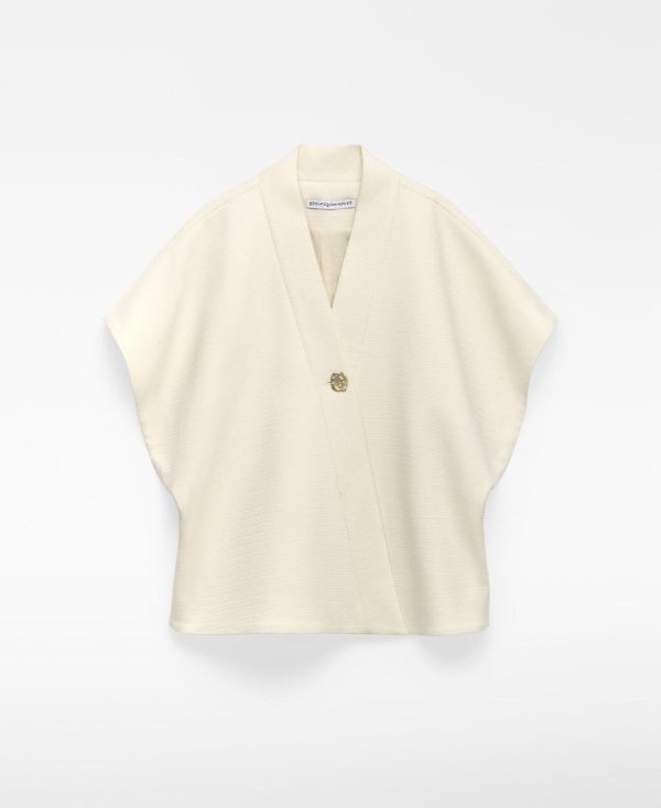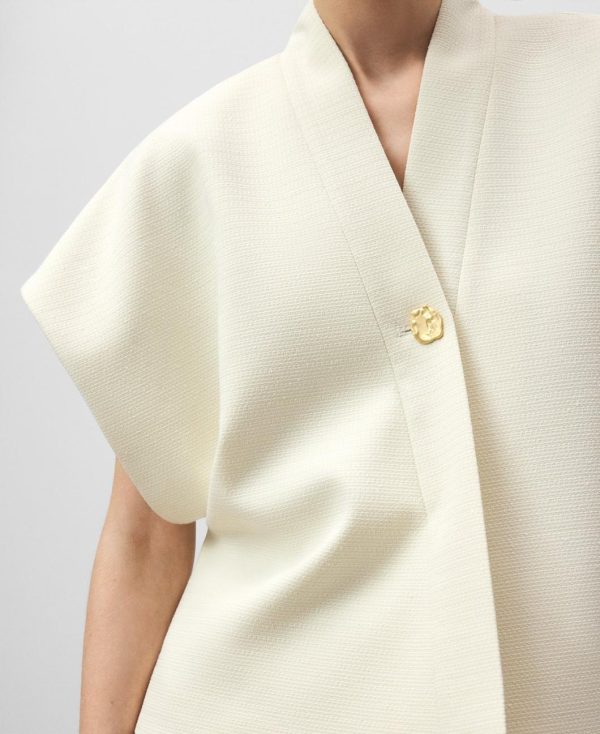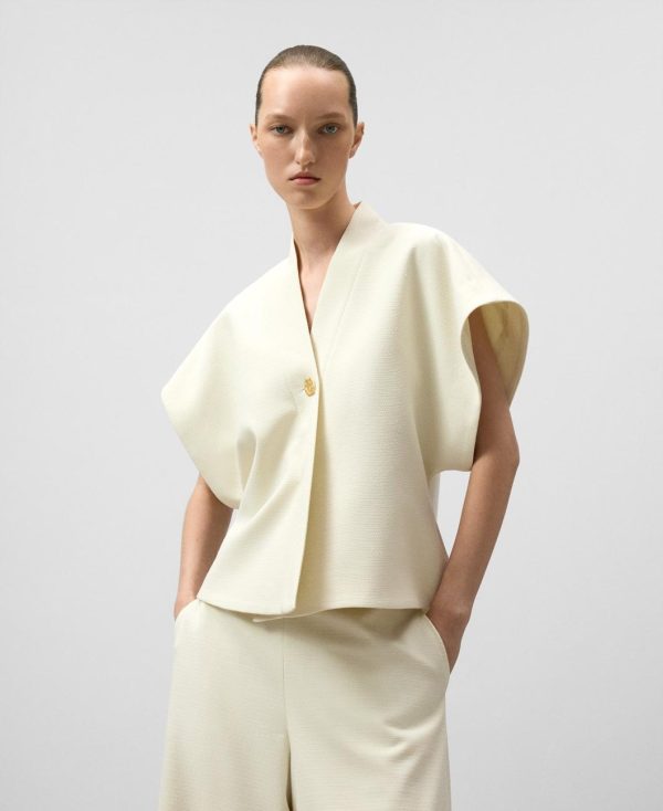 Top cruzado textura mujer. Escote pico con cierre botón decorativo. Manga corta japonesa.