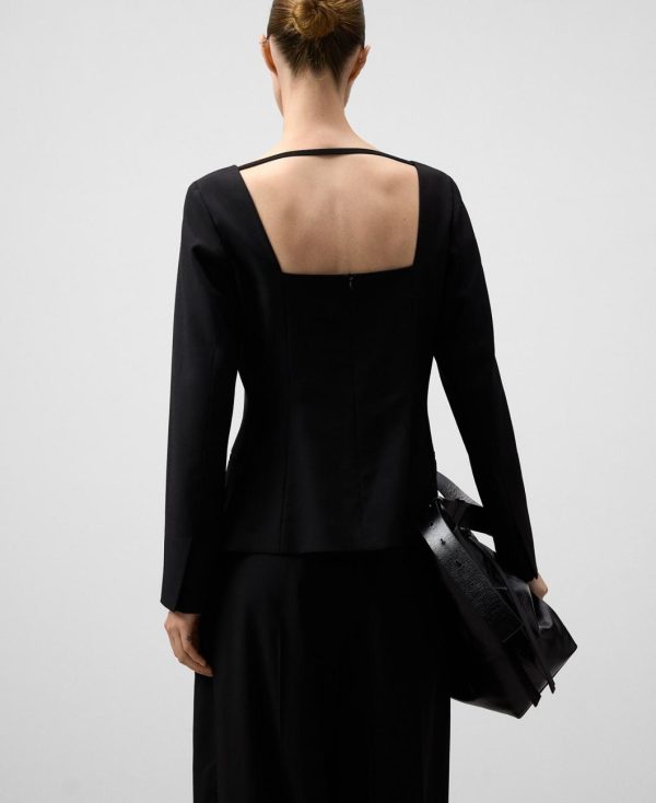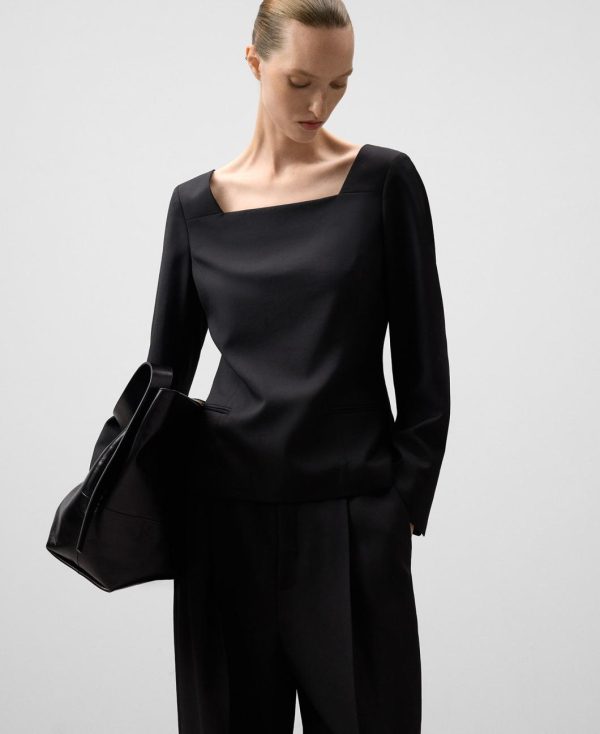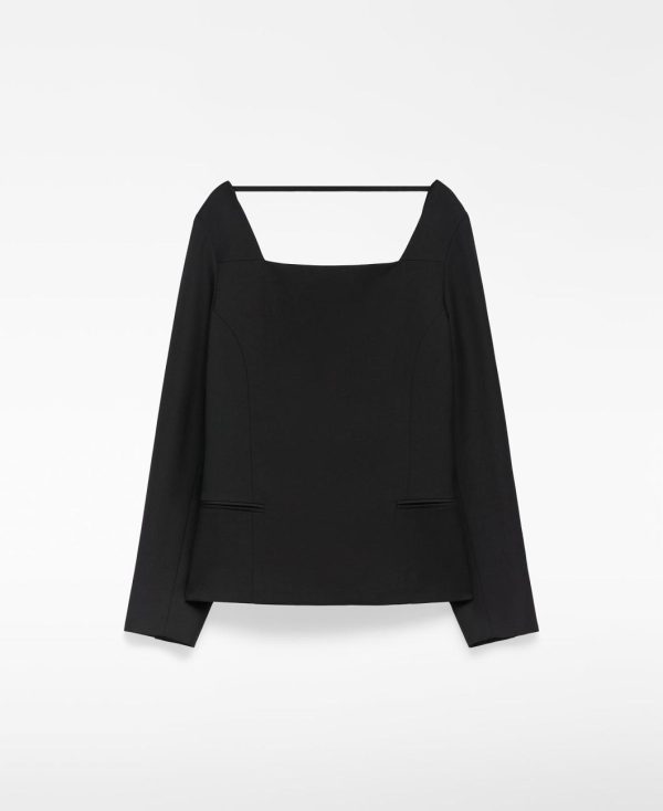 Top sastre mujer. Escote cuadrado en delantero y espalda. Manga larga. Bolsillos de vivo en delantero. Cierre cremallera invisible en espalda.